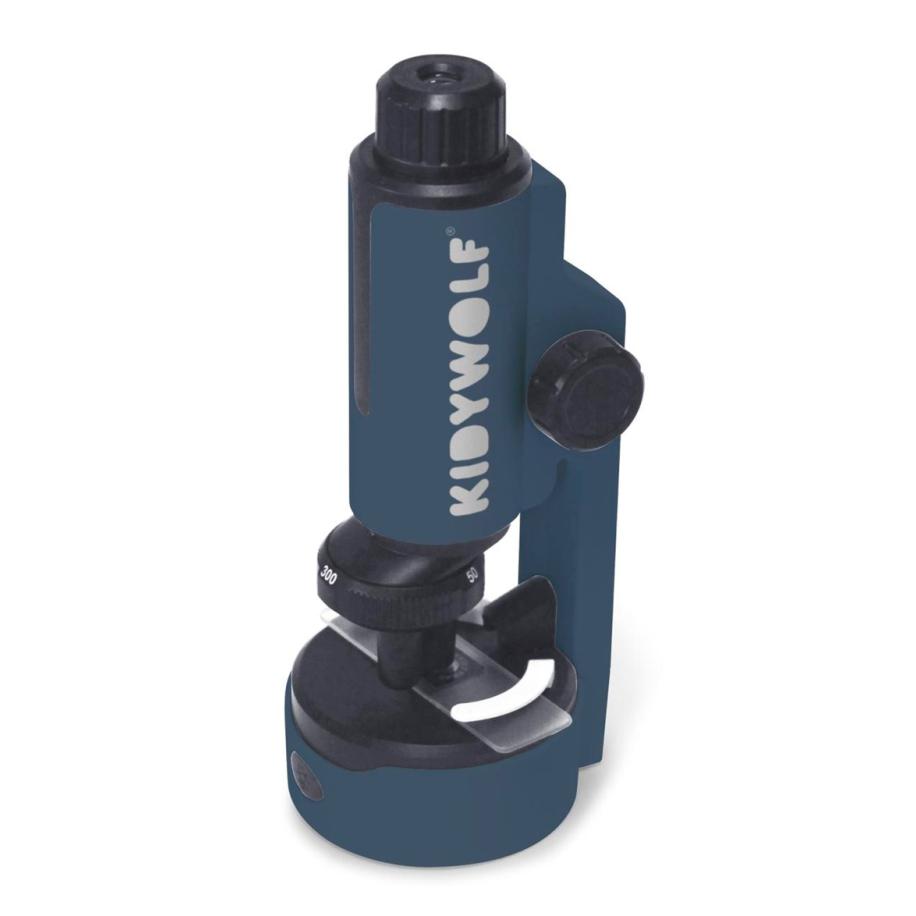 O KIDYMICROSCOPE é um microscópio portátil fácil de utilizar. Iluminação a partir de baixo, não de cima. Zoom X50, X150, x300 com focagem manual